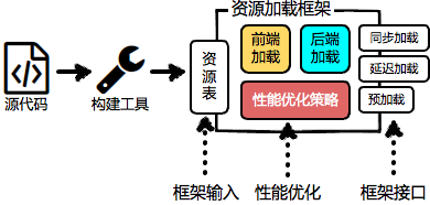 }而资源加载框架则提供一些资源引用的API,让开发者根据id来引用资源,替代静态的script/link标签来收集、去重、按需加载资源。调用这些接口时,框架通过查表来查找资源的各项信息,并递归查找其依赖的资源的信息,然后我们可以在这个过程中实现各种性能优化算法来“智能”加载资源。